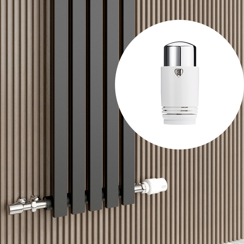 Chrome plus injection moulded white underfloor heating thermostatic valve head